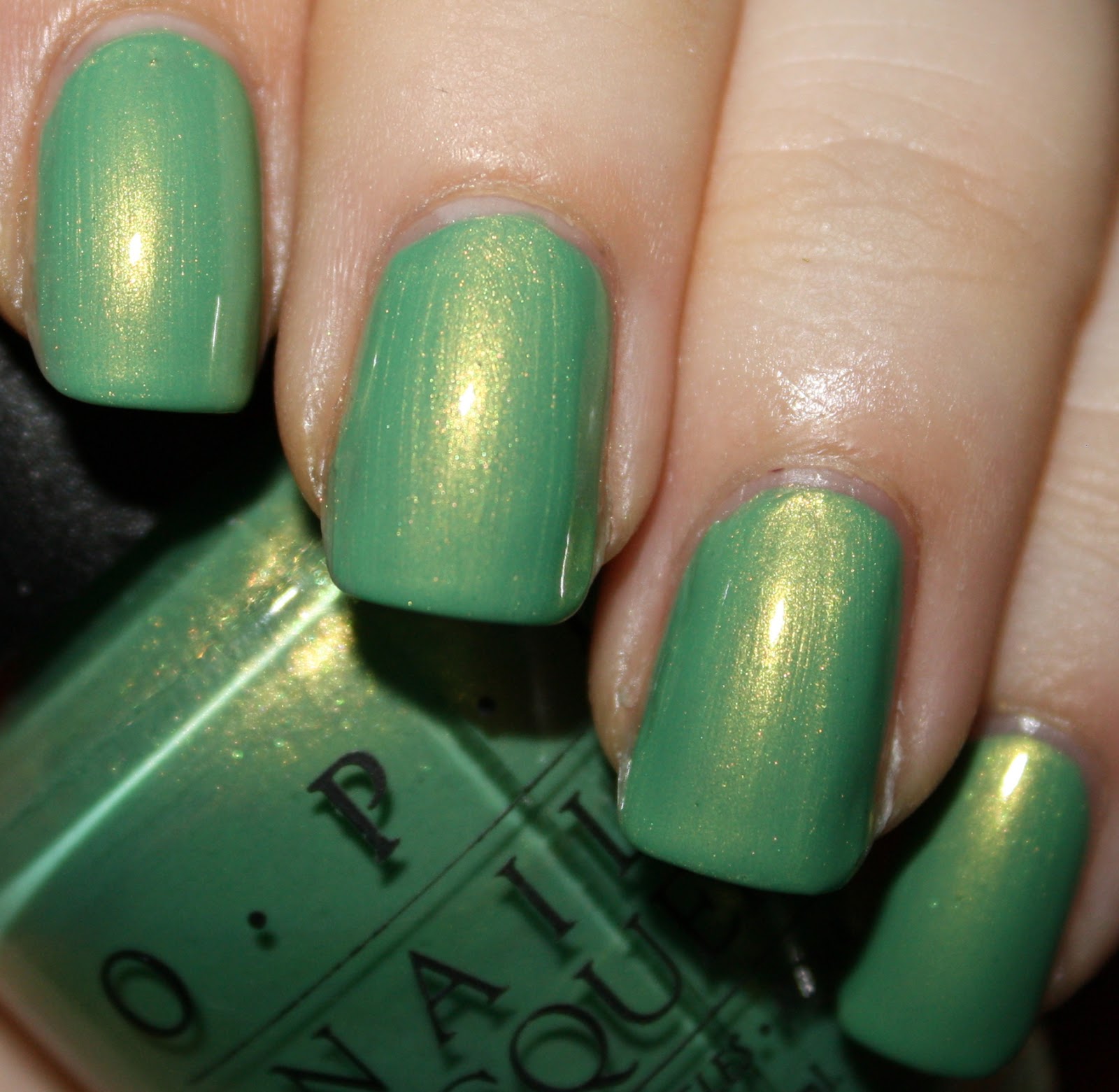 Here's 3 coats of OPI Creme de Menthe. I took a boatload of pictures and couldn't decide which ones I liked the best, so here's a bunch! Enjoy =)